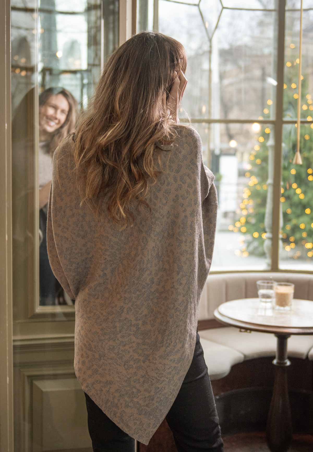 Refresh your wardrobe with the Amara poncho. Featuring a fashionable, stylized animal pattern, Amara is made from the same soft, luxurious knit as our popular Juolas poncho. Its supple drape and cozy hand feel make it an easy, versatile layer — perfect for casual outings, evenings, or weekend city looks. This season’s must-have statement piece.