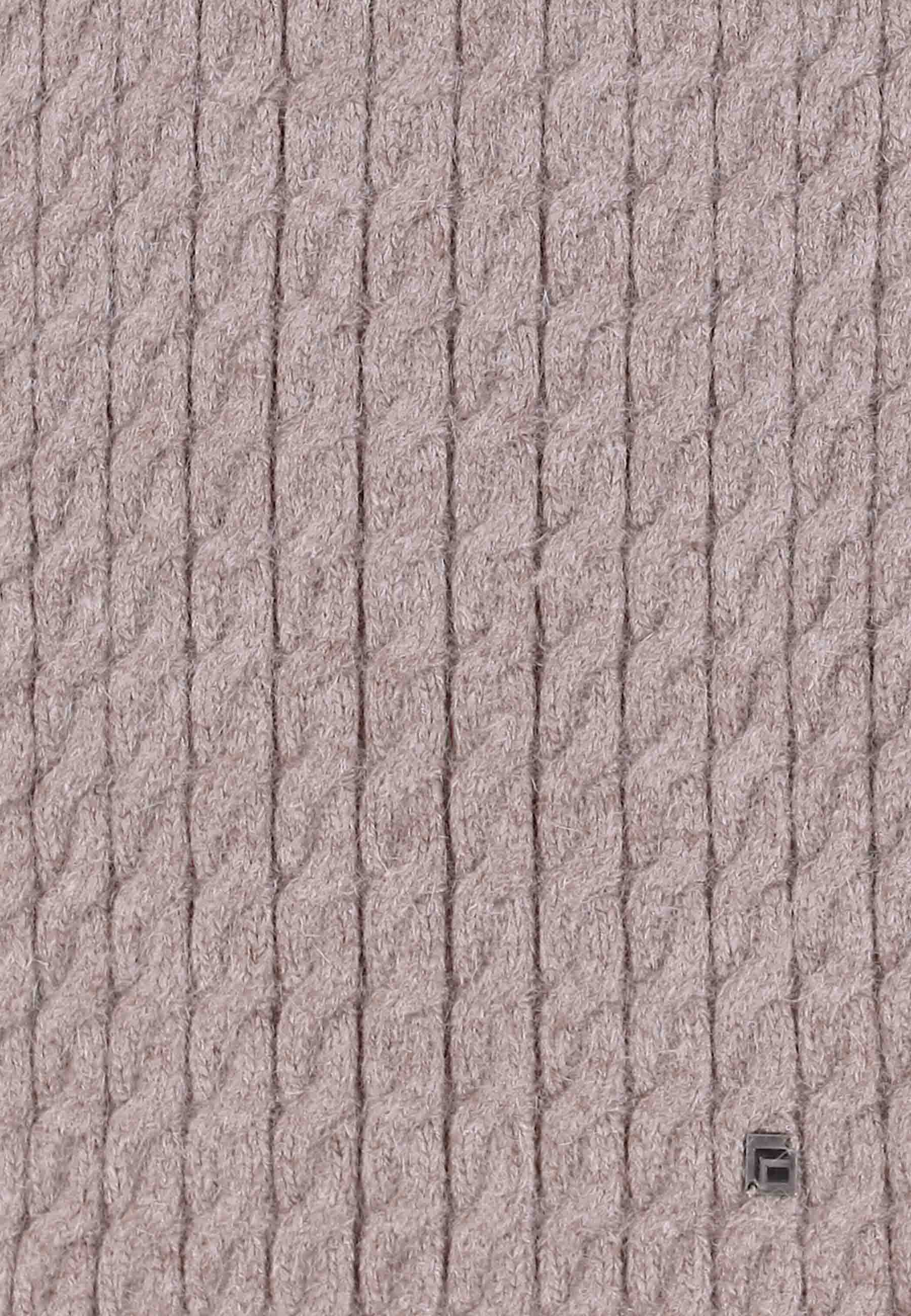 The material of the Arine braided tube scarf is 10% angora, 34% viscose, 38% nylon and 18% polyester. The size of the knitted tube scarf is 19x58cm and it is easy to wrap around the neck with two loops. The knitted tube scarf belongs to the same series as the braided beanie Arrane and the hood.