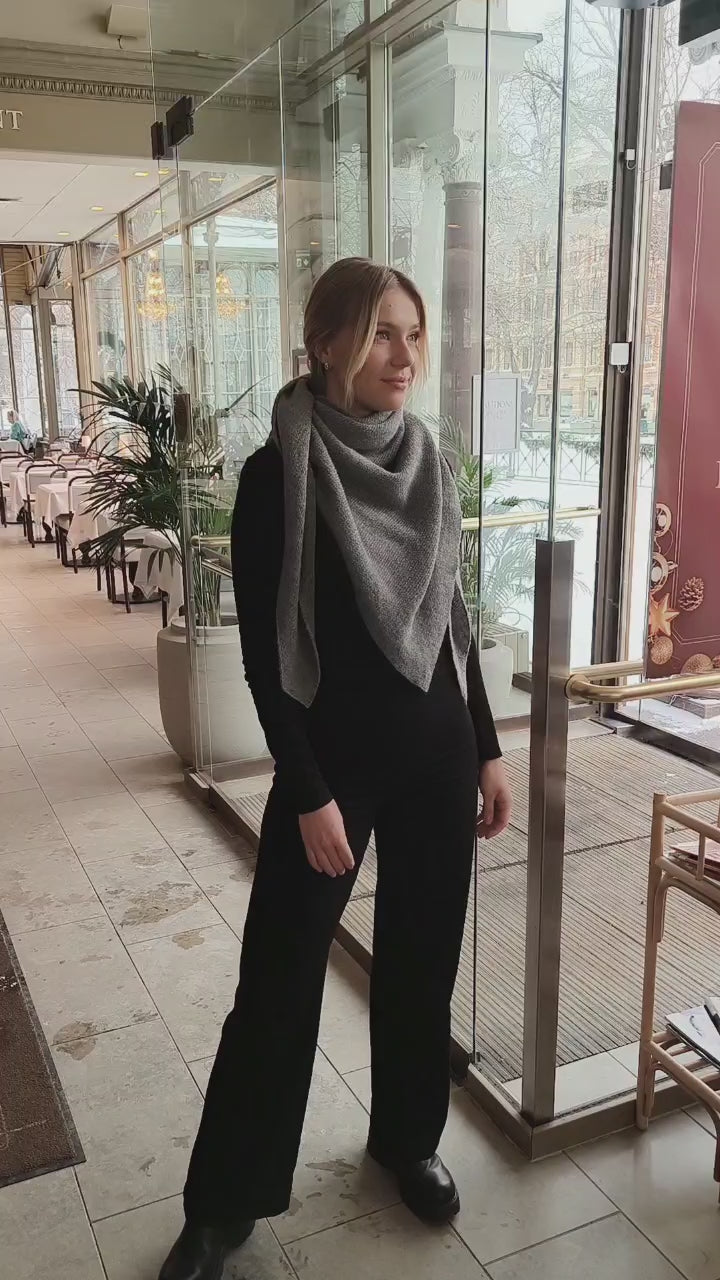 The Artha knitted triangular scarf is a wonderfully soft knitted scarf made in Italy, with a material composition of 5% alpaca, 10% wool, 80% acrylic, and 5% viscose. This generously sized scarf is triangular in shape, measuring 190x85 cm. The Artha scarf is suitable for wearing around the neck with a jacket or as a shawl over the shoulders. Available in several beautiful, easy-to-match colors.