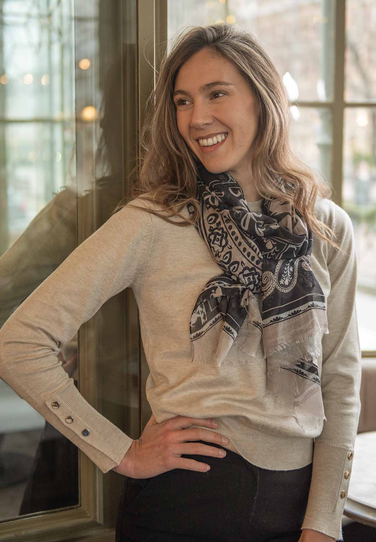 The Shilo lyocell scarf showcases a stylish patchwork-inspired print and is made from wonderfully soft, eco-friendly lyocell. Measuring 70 × 180 cm and available in three beautiful colourways, it works perfectly as a coat scarf or a fashion wrap. Try it on — you’ll love it!